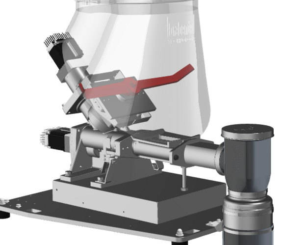 - A special negative angle wall hopper geometry and an diagonal agitator that prevents bridging and ensures optimal bulk material flow into the screw